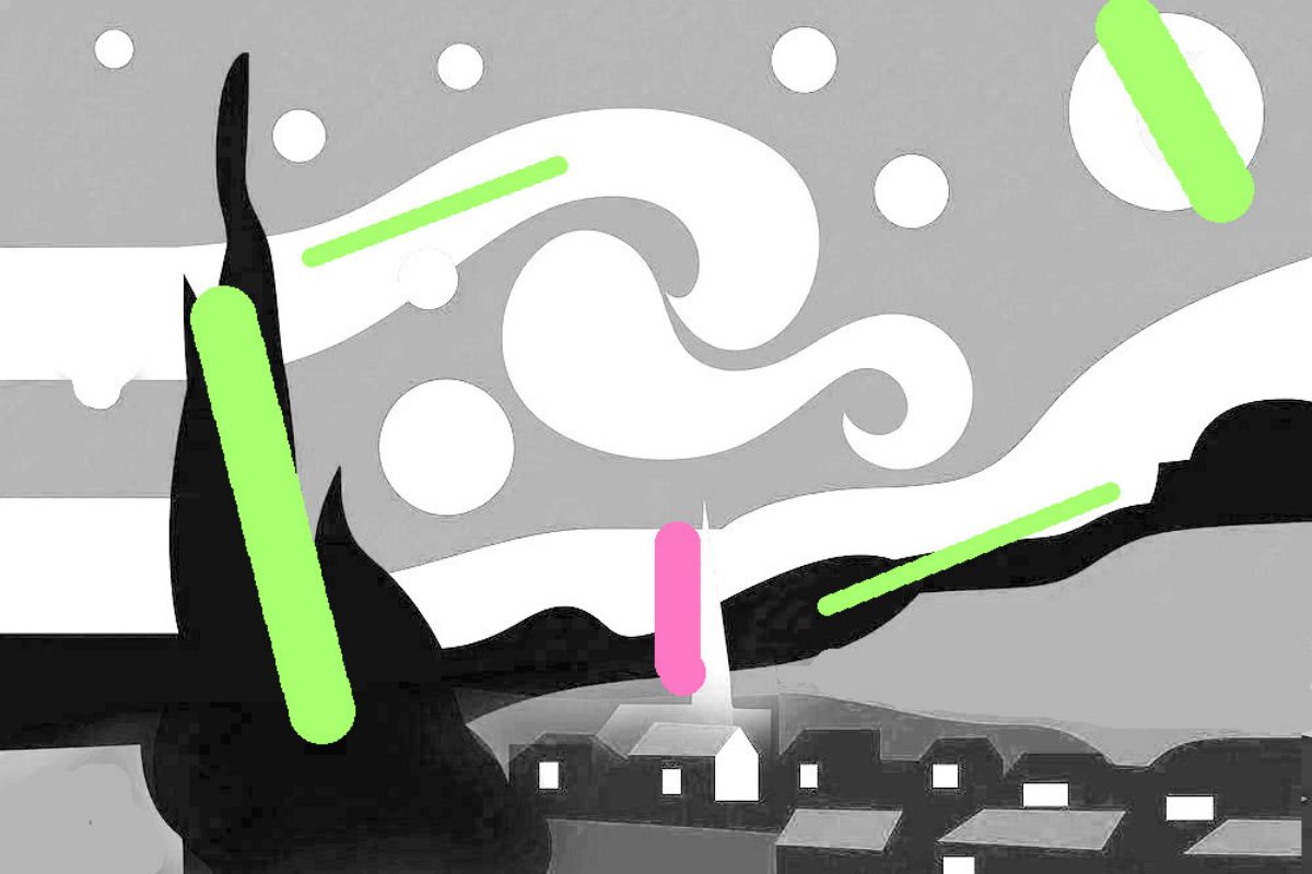 Les masses sombres du cyprès et du village contrastent avec les éclats lumineux du ciel. Les tourbillons bleus et les halos jaunes se répondent dans un mouvement continu. La verticalité du cyprès relie les plans terrestres et célestes, structurant la composition. Le rythme des lignes, fluide et ascendant, donne au paysage une énergie qui dépasse la simple observation du réel.