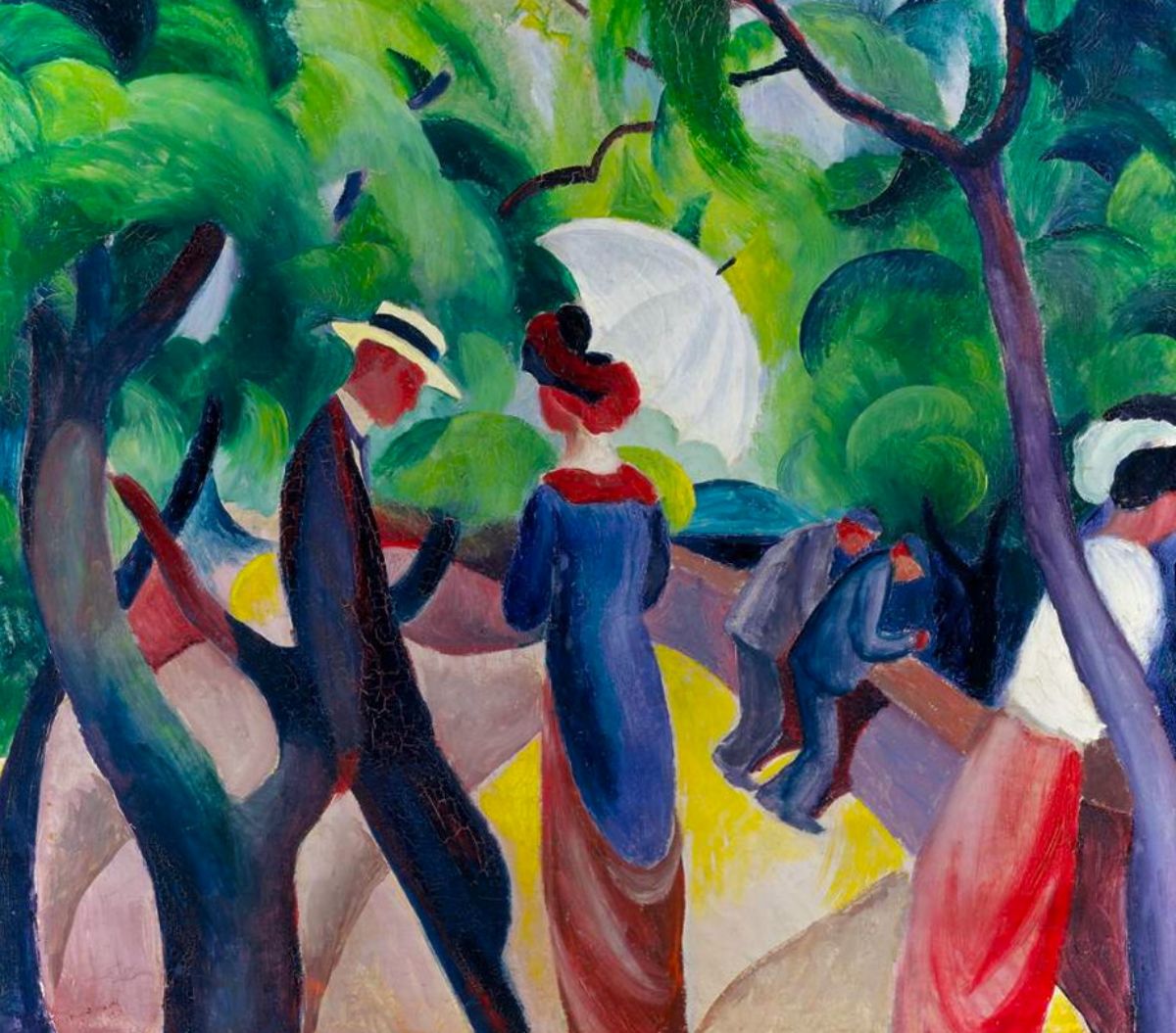 L'œuvre d'August Macke est un tourbillon de couleurs et de formes qui capte instantanément l’attention. Il transforme des scènes quotidiennes en fragments d'émotion pure, rendant la couleur vivante et vibrante dans une danse lumineuse et joyeuse, unique et immédiatement reconnaissable.