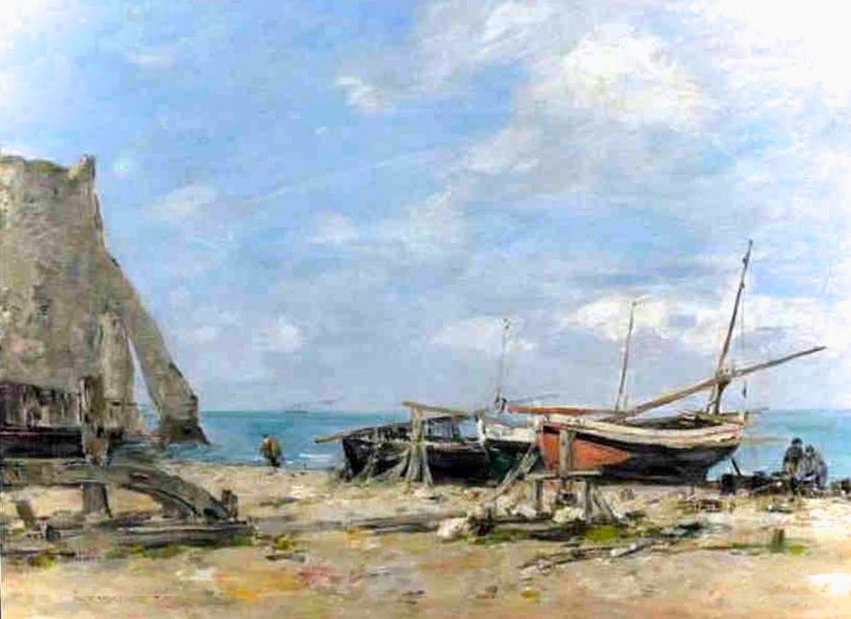 C’est Boudin qui encouragea le jeune Monet à peindre sur le motif, en plein air. Monet lui devait tant qu’il l’appelait affectueusement « mon maître ». En 1851, encore vendeur dans la papeterie de son père au Havre, Boudin accroche ses premiers dessins dans la vitrine — ce sont ses clients qui lui conseillent de se consacrer à la peinture.