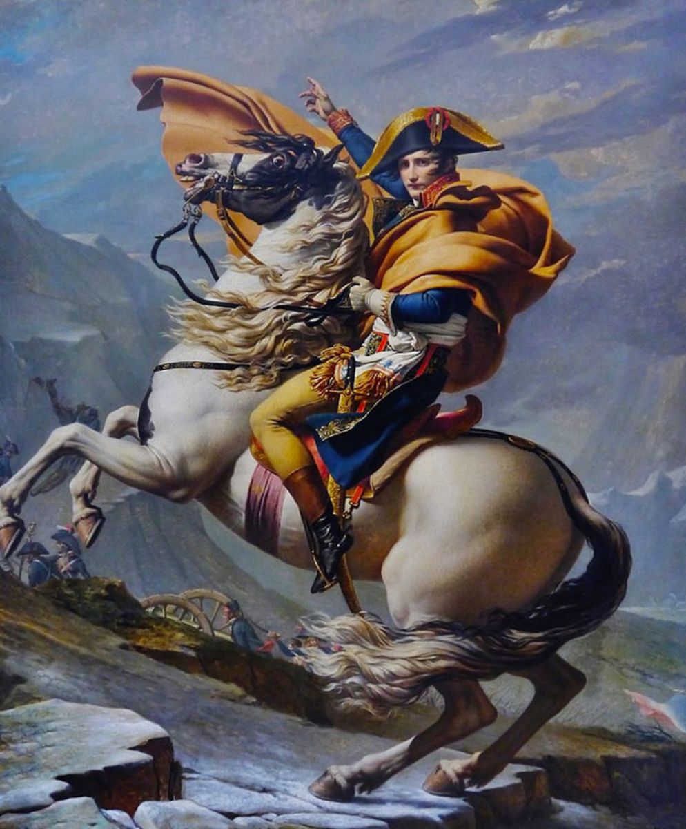 Tableau héroïque et politique, où le général est représenté en conquérant triomphal. En copie peinte à la main, cette œuvre emblématique restitue toute la puissance et le souffle épique de David.