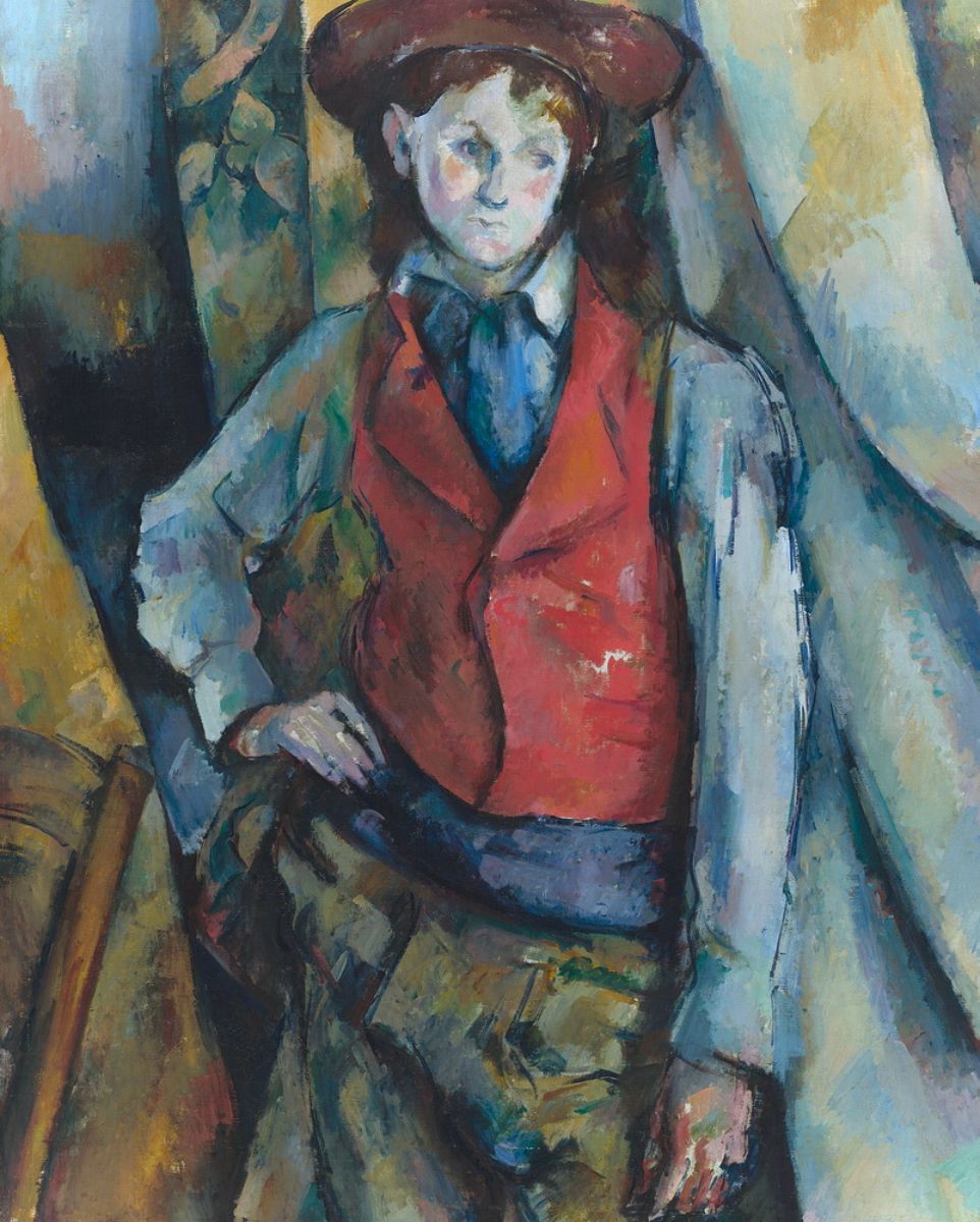 Portrait d’une intensité rare, construit en aplats puissants, emblème du style de Cézanne.