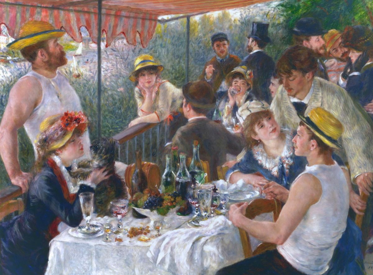 Icône de l’art moderne, cette composition mêle portraits et atmosphère conviviale au bord de la Seine. Copiée à la main, elle restitue la lumière festive et la spontanéité de l’original.