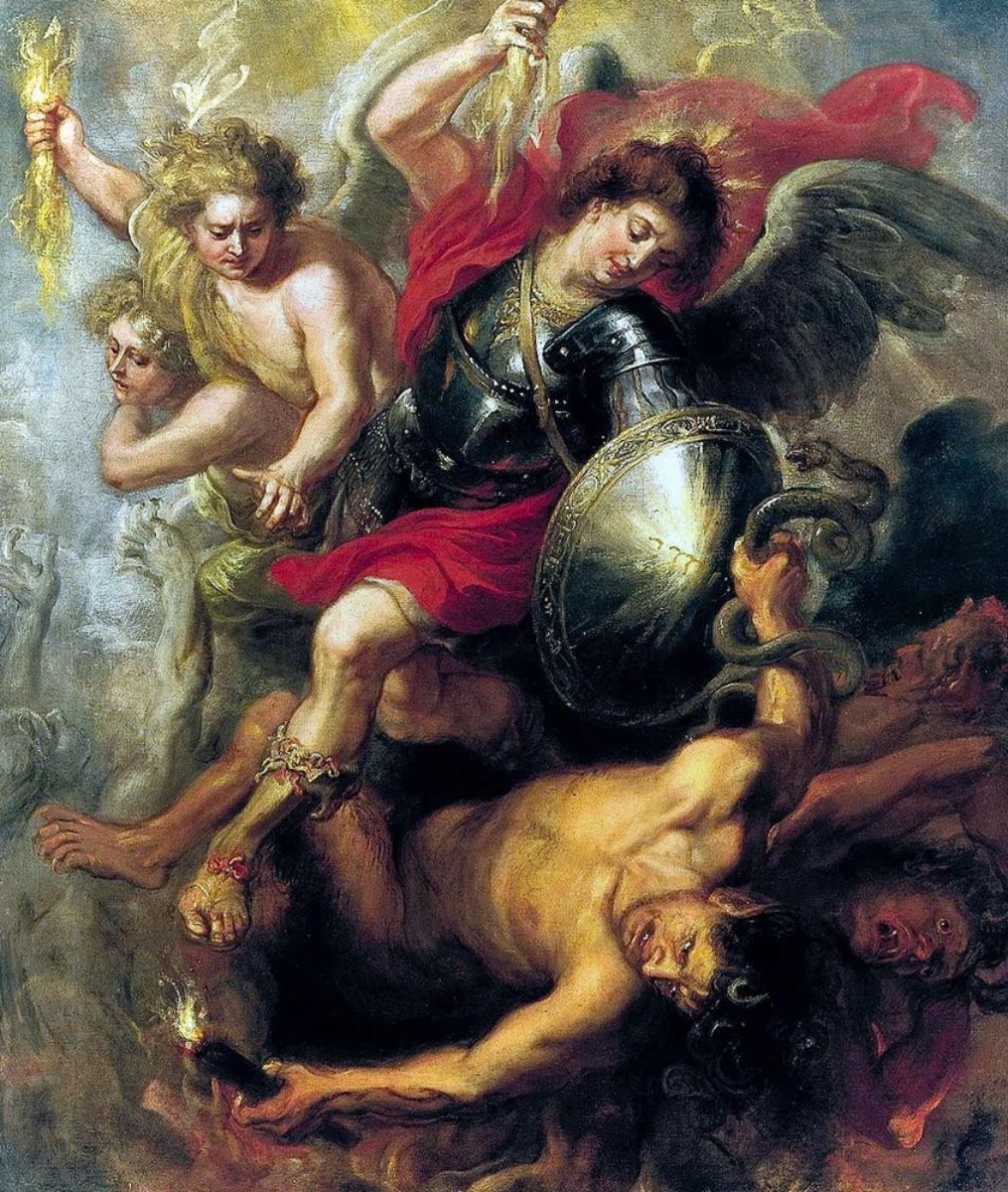 Une fresque baroque spectaculaire, où la lutte céleste prend toute son ampleur dramatique. En copie peinte à la main, elle devient un témoignage fort de l’art triomphant de Rubens.