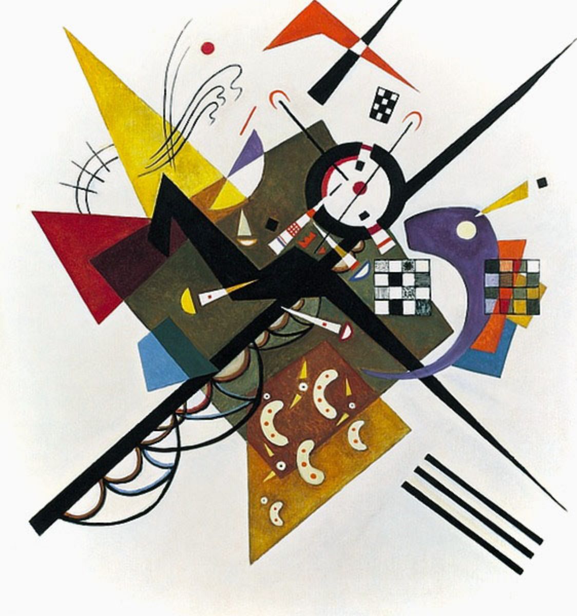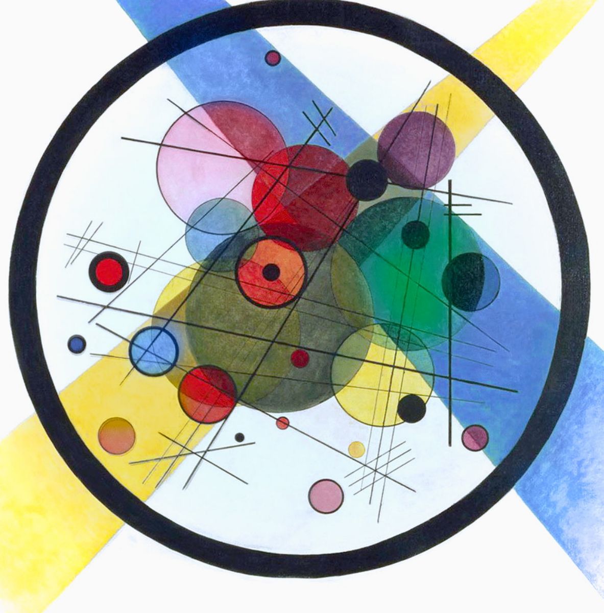 Chef-d’œuvre de l’abstraction géométrique, où lignes droites et formes rondes s’équilibrent dans une orchestration lumineuse. Copié à la main, ce tableau conserve toute sa clarté rythmique et décorative.
