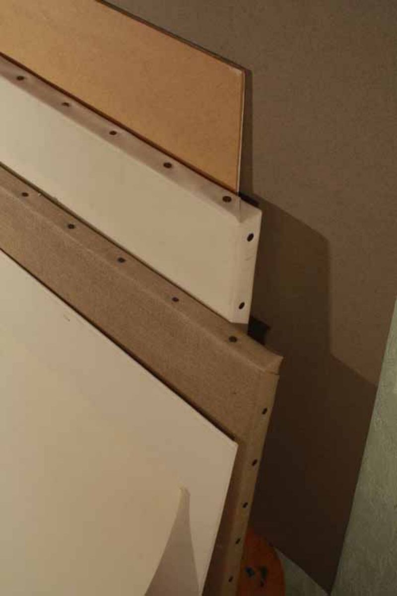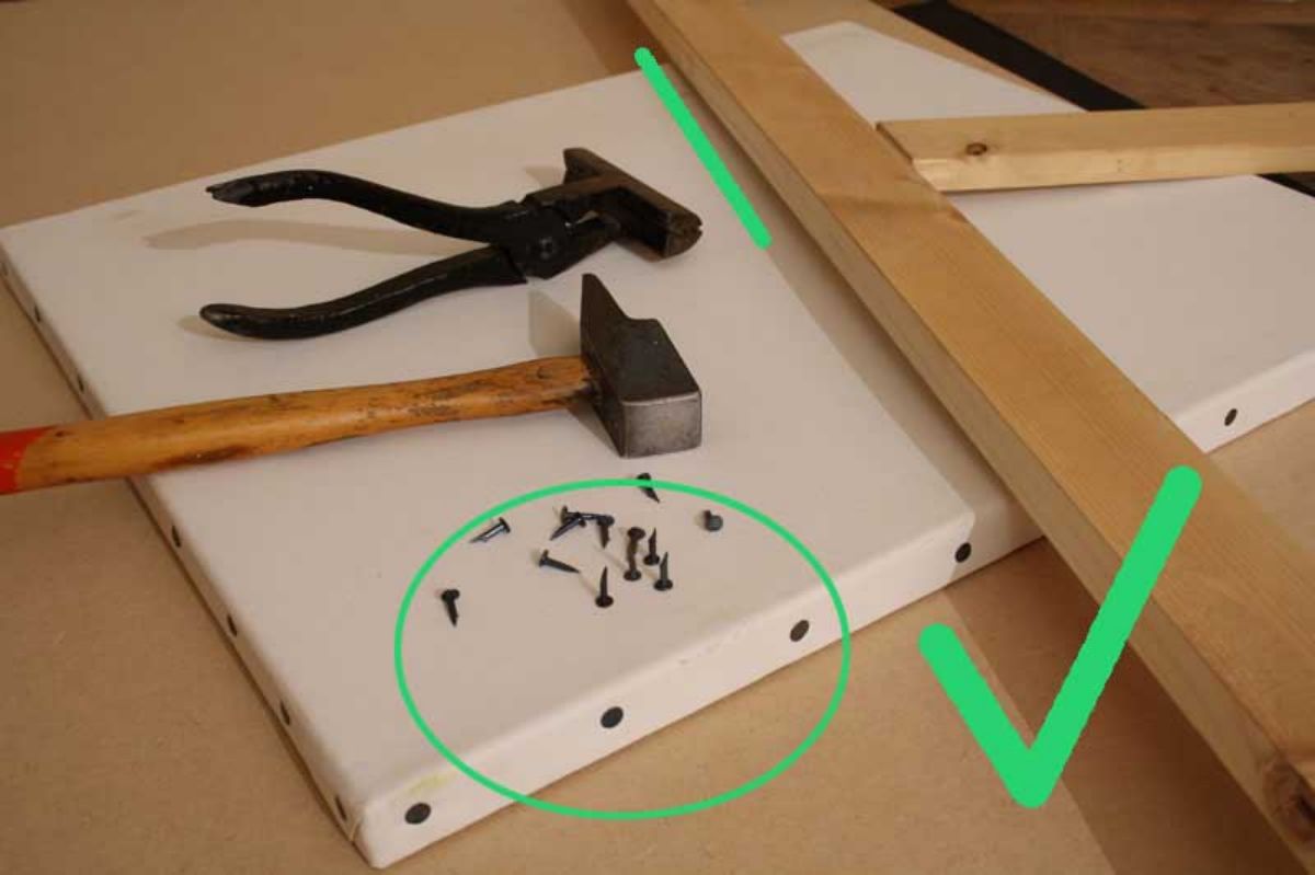 The canvas, made of linen or cotton, is carefully stretched on a wooden stretcher using upholstery tacks (not staples).