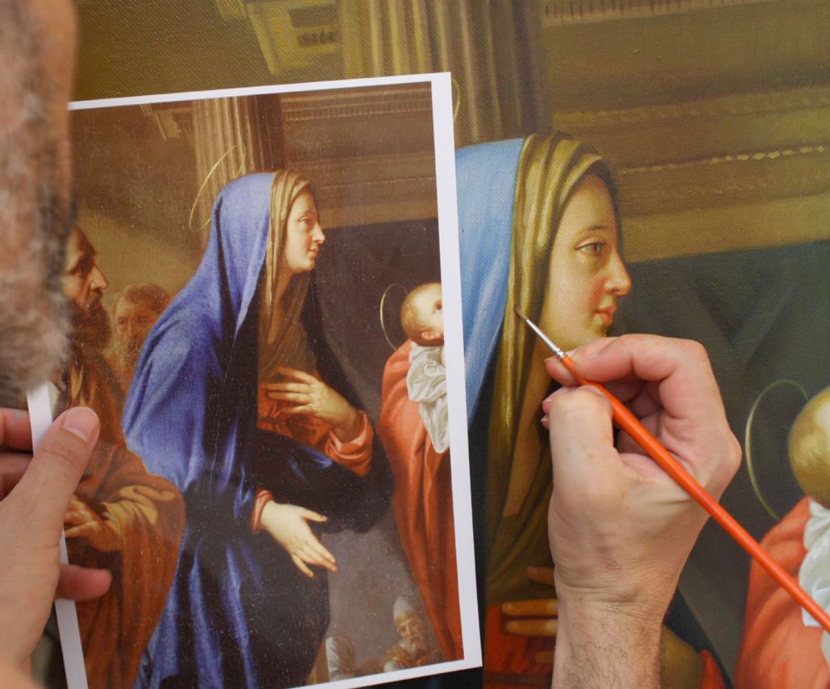 Every element — color, texture, and light — is worked meticulously to restore the depth and emotion of the original, far beyond any printed imitation.