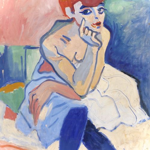 An emblematic Fauvist portrait, structured through bold color fields and simplified contours. In its handcrafted reproduction, the painting restores the density of tones and the depth of the gaze.