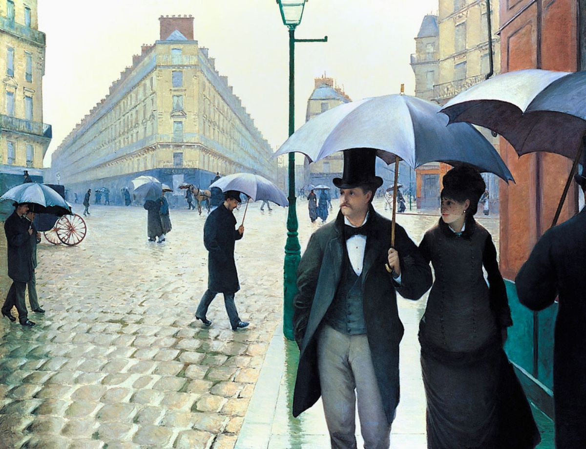 With Caillebotte, composition takes precedence: his dizzying perspectives and unexpected framing give his scenes an almost photographic modernity. Caillebotte paints the city like a choreographer films a dance. Sidewalks, umbrellas, and reflections become motifs in a silent ballet, incredibly contemporary.
