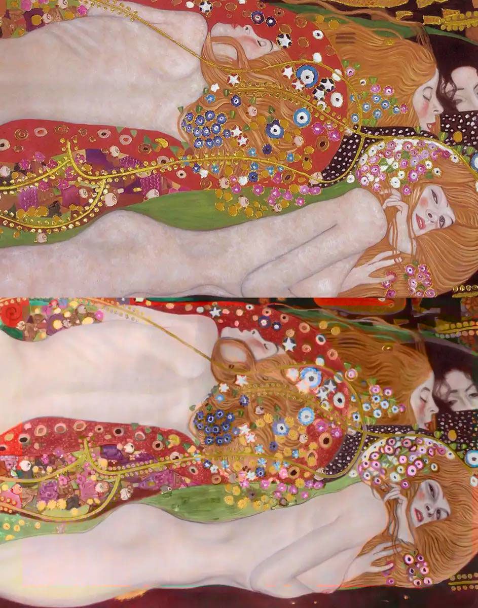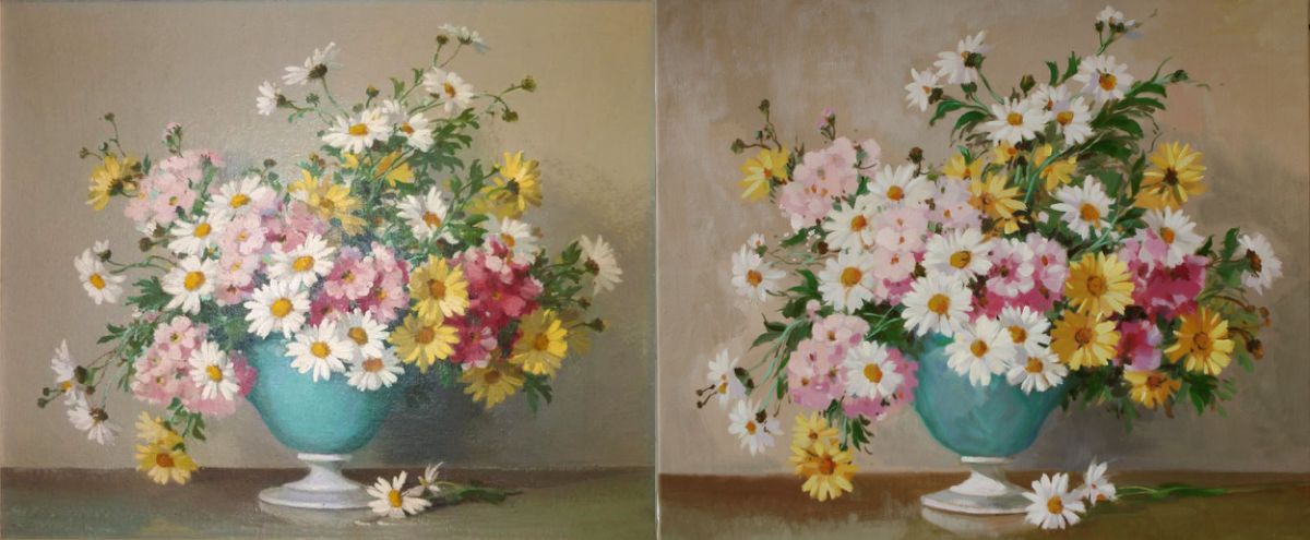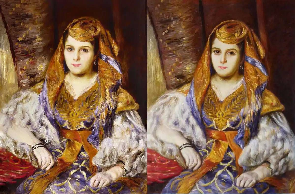 Comparing original and copy reveals how each brushstroke contributes to restoring the vitality and individuality of the subject.