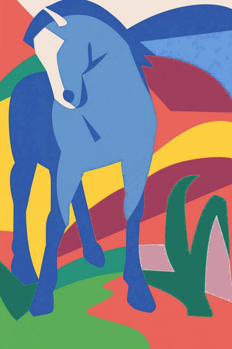 Through value contrasts, a chromatic focal point and the organisation of simple forms, Franz Marc elevates the horse to a symbolic presence. The animal becomes a metaphor for purity, strength and harmony with nature. The work expresses a spiritual and idealised vision characteristic of the Blaue Reiter aesthetic.