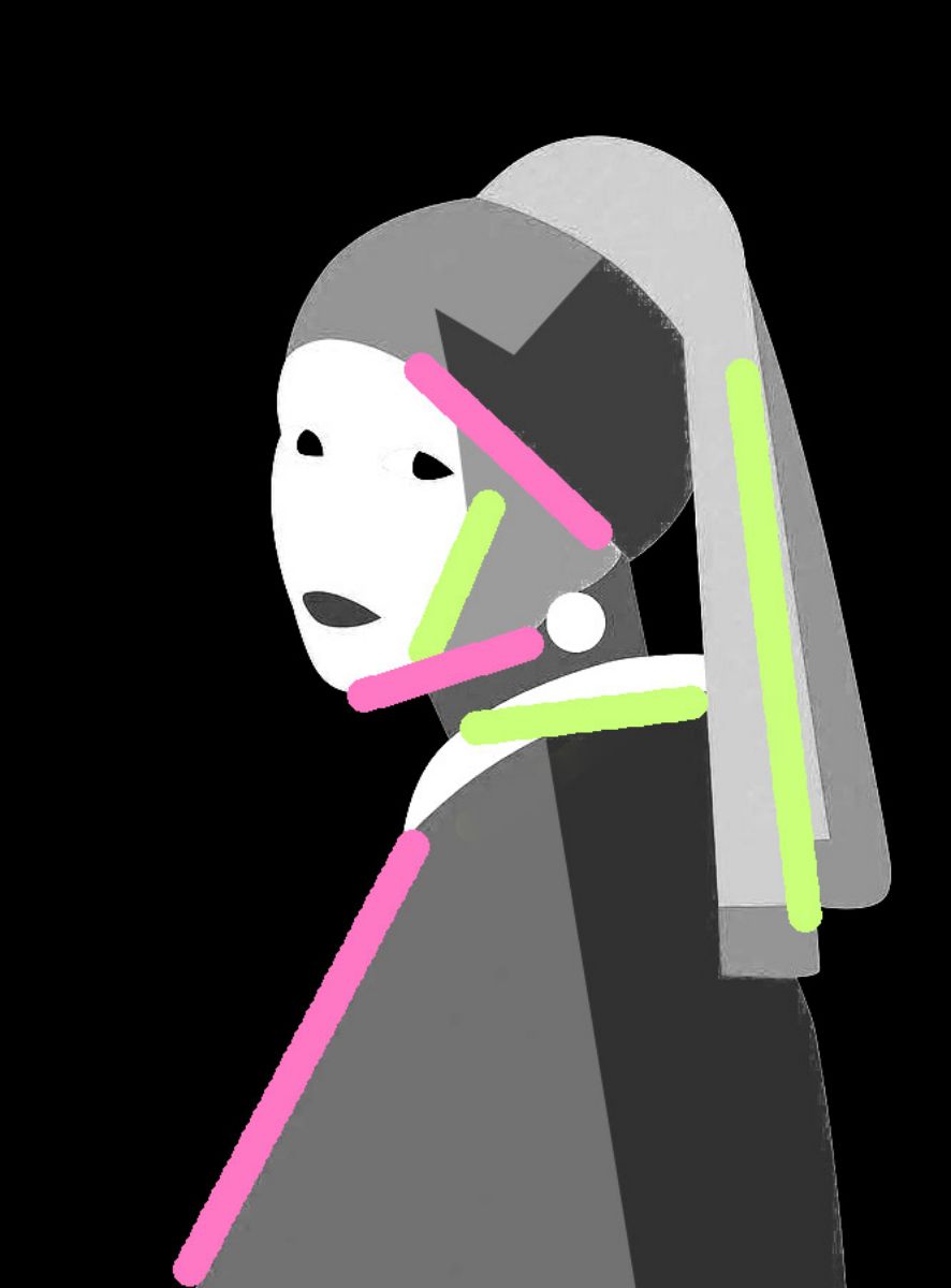 The focal point lies in the face turned toward the viewer and the pearl’s highlight. Blue and yellow of the turban frame the eyes and lead to delicate features. Minimal detail concentrates attention on the silent exchange, heightening expressiveness.