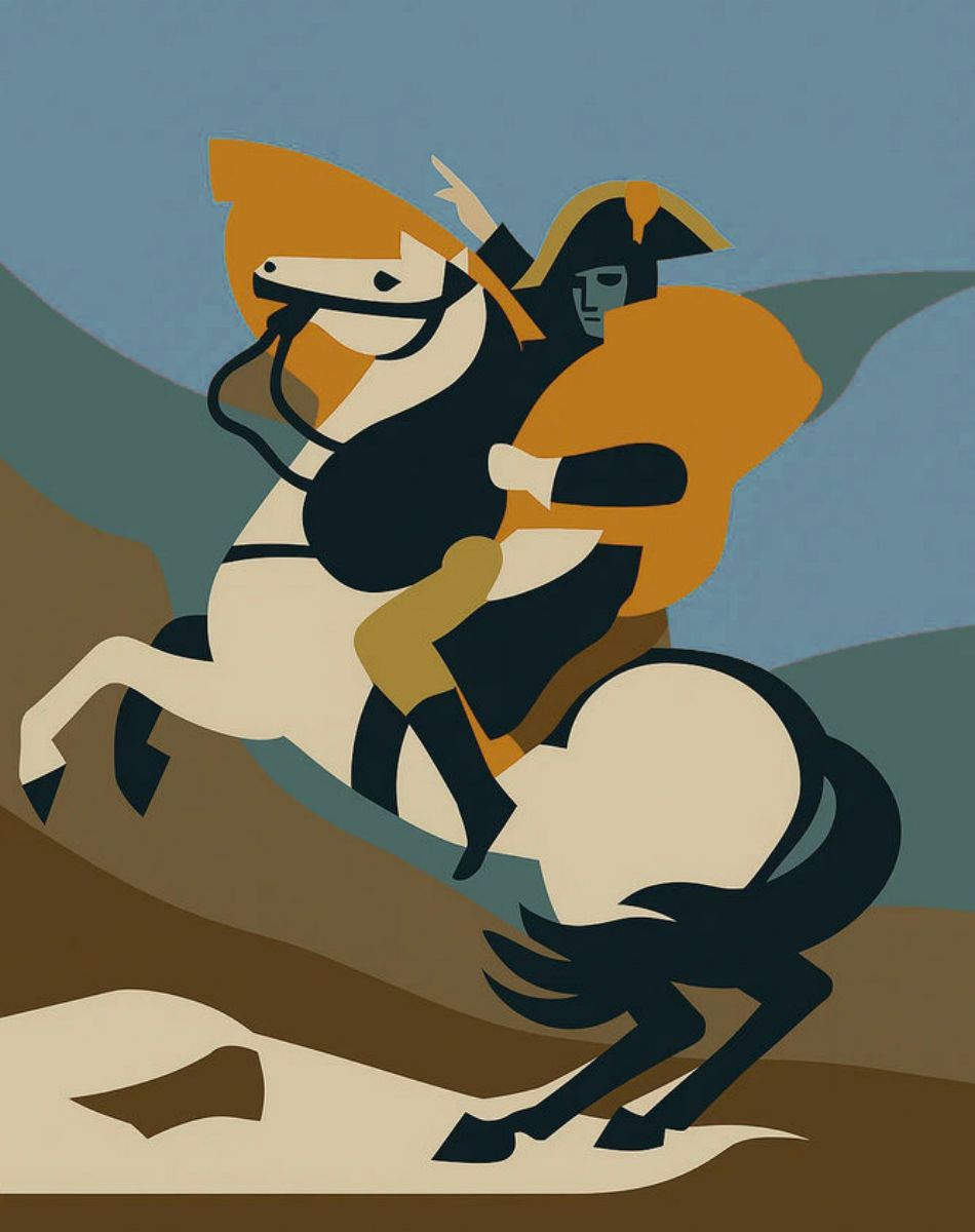 Combining stark values, a concentrated focal point, and powerful forms, David composes propaganda in paint: Napoleon appears not merely a general but a timeless, near-mythic figure. The image speaks of invincible energy — man and history rising above nature.
