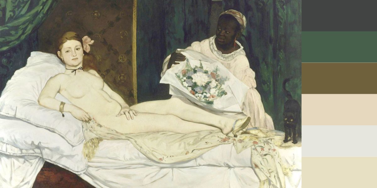 Values are organized between the blazing brightness of the woman’s body and the dark zones of bed, curtain, and maid. This contrast fixes the focal point on the main figure, whose skin captures light with unprecedented frankness. The hierarchy of tones underscores the subject’s frontality and the model’s isolation, poised between shadow and gaze.
