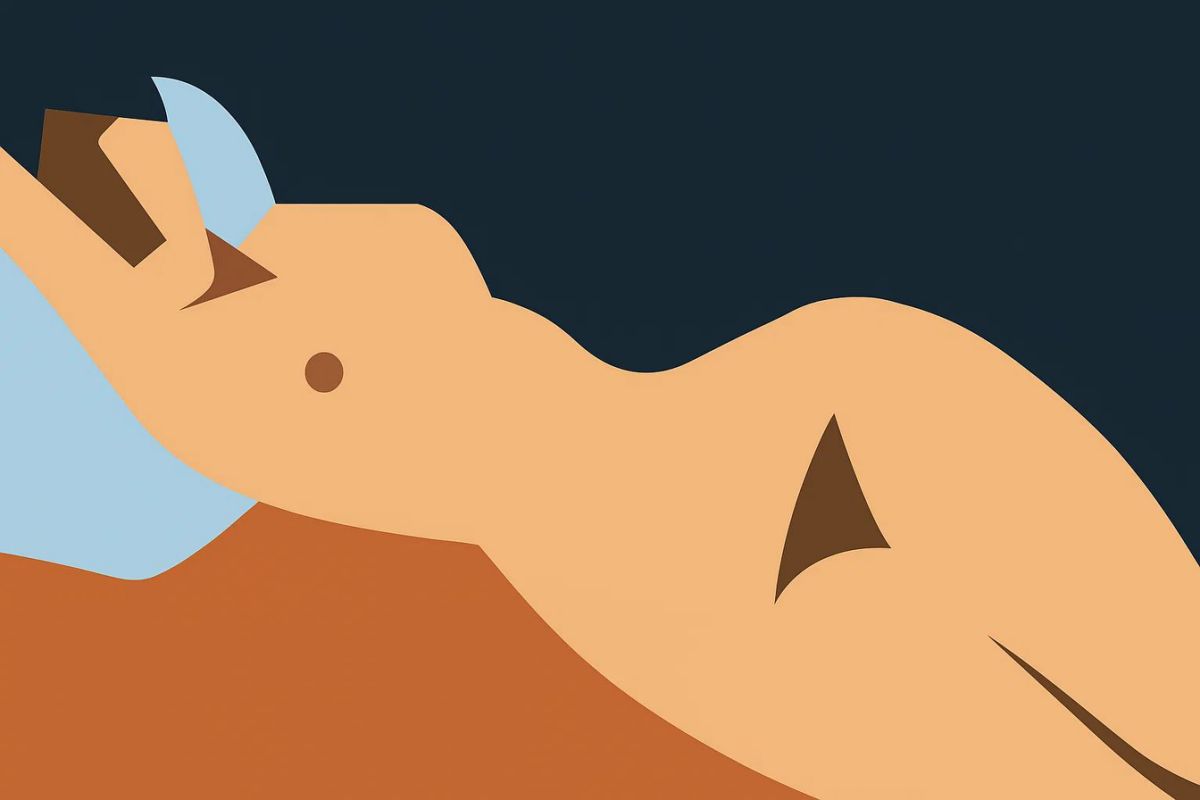 Values articulate between the body’s golden clarity and the background’s dark masses, creating a structuring contrast. The focal point concentrates on torso and face, bright zones around which all is organized. The body’s long, supple lines guide a continuous reading. Full and empty, sensuality and formal balance alternate so each volume asserts itself with measure.