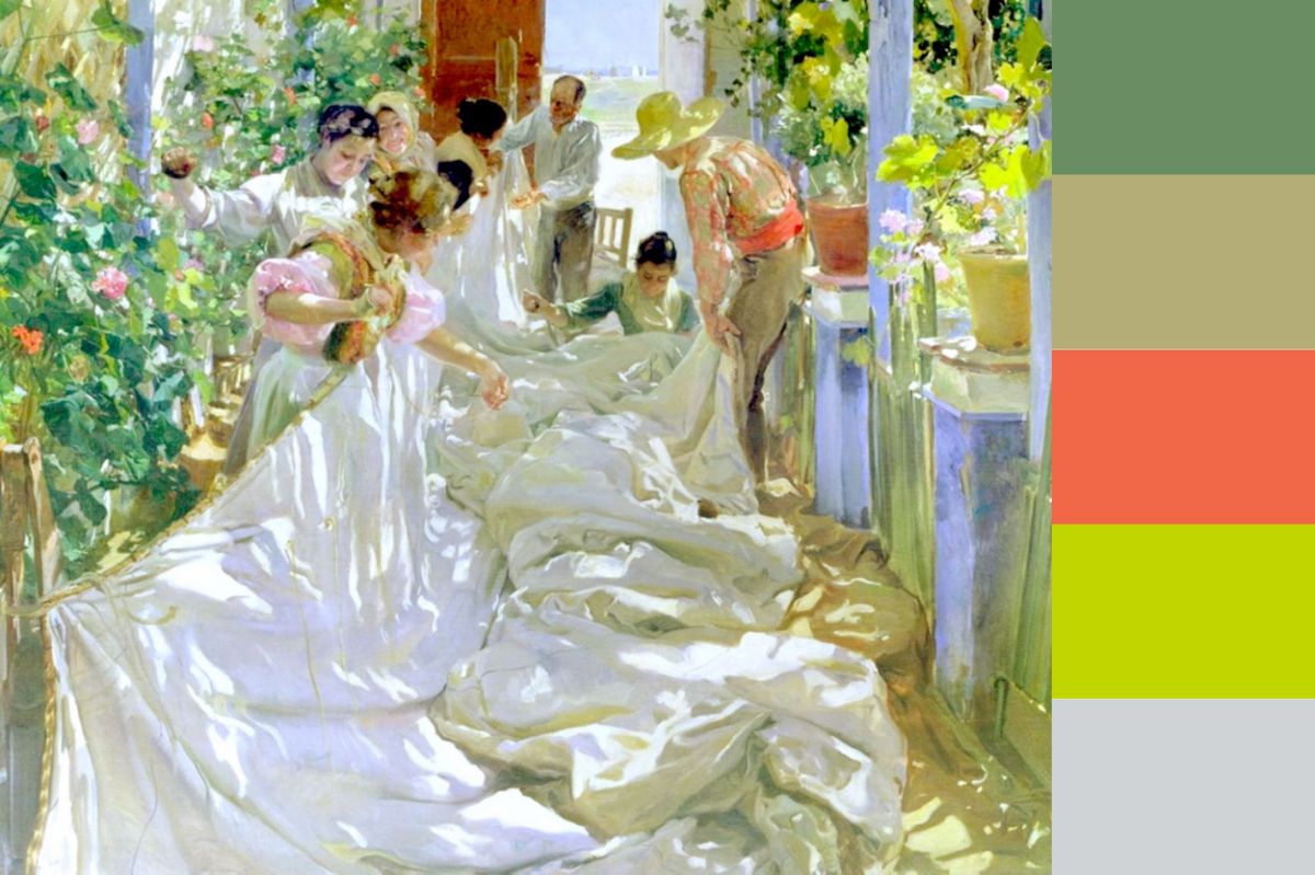 Copying Repairing the Sail is meeting light in its fullness. White is never pure: compose it from blues, ochres, and warm reflections. Keep shadows alive to preserve vibration. Each touch builds light more than it describes it. Sorolla does not paint the sea: he paints the sun.