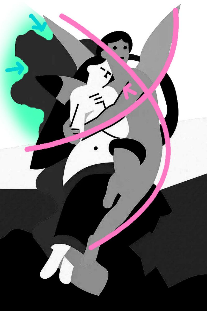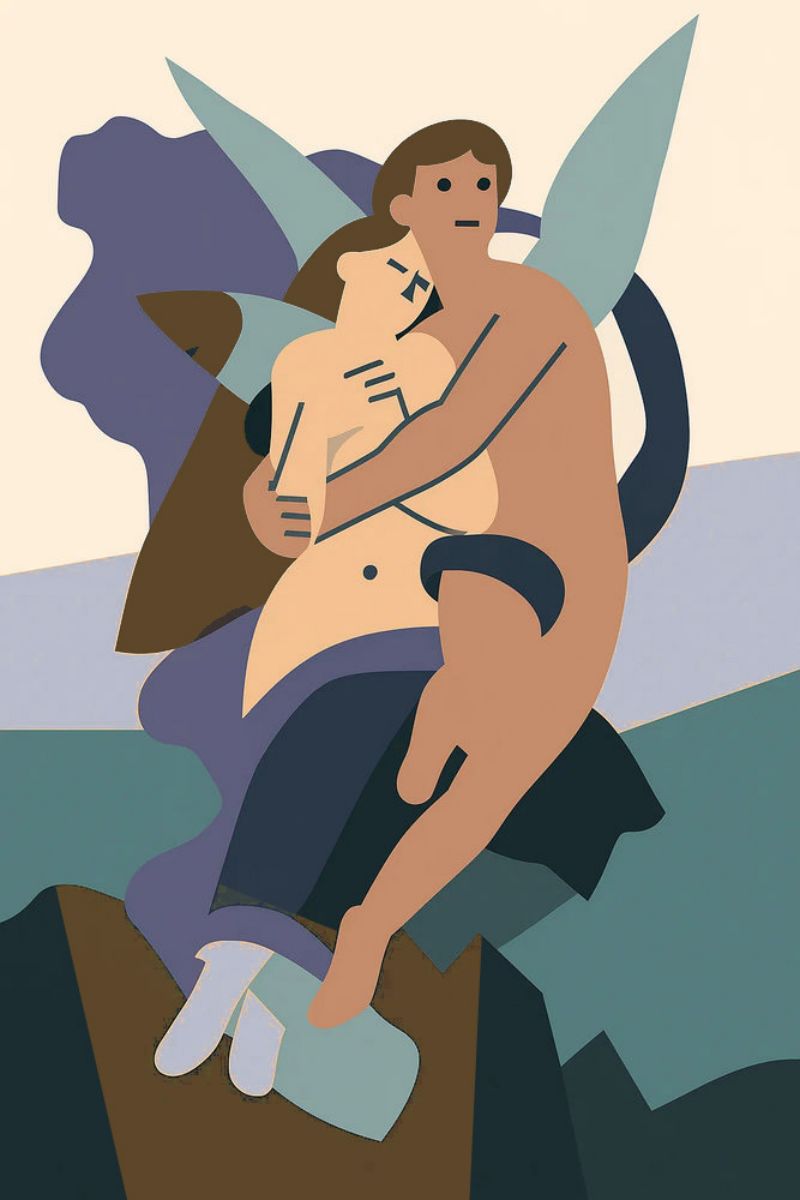 The focal point centers on the lovers’ embrace: the whiteness and vertical ascent draw the eye. Curved lines of limbs and wings guide vision upward. Floating draperies and clouds amplify the sense of rising.