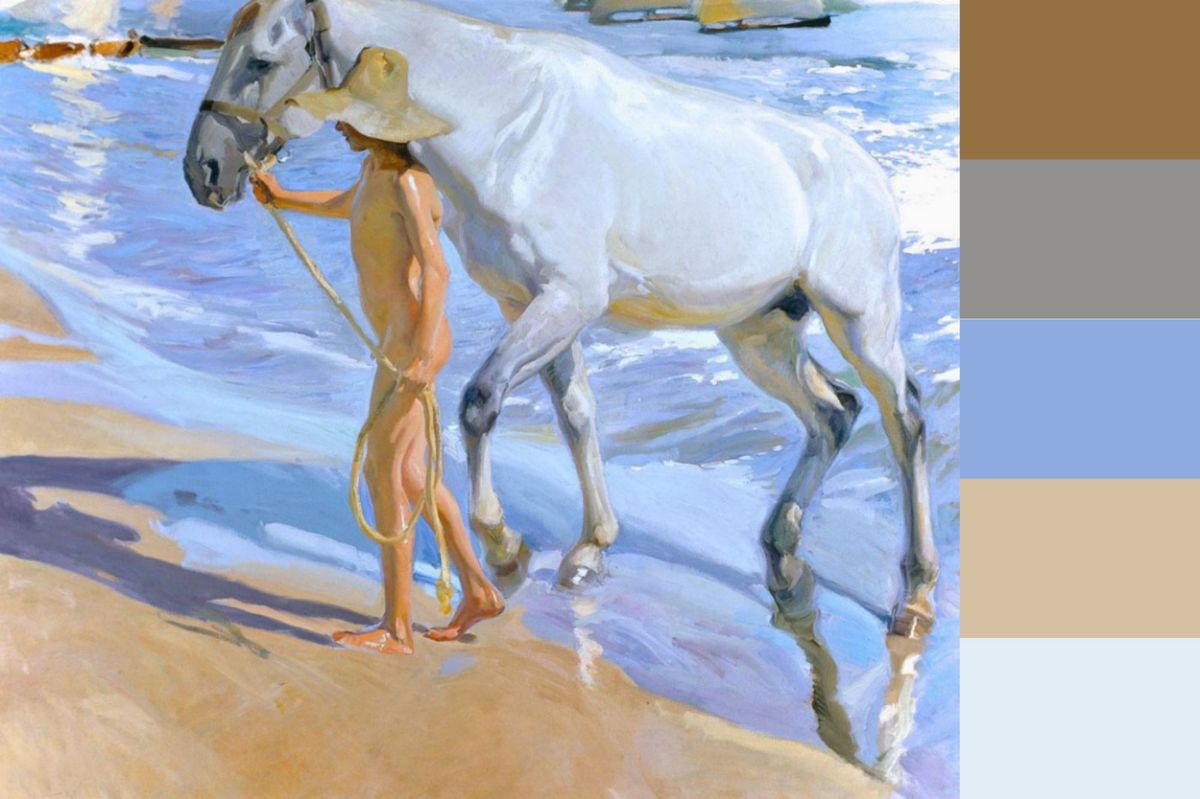 Copying The Horse’s Bath means painting light in motion. Whites must vibrate without turning cold, modeled by warm reflections and colored shadows. Keep the brush free, following water’s flow and muscle tension. Each touch unites air, sea, and skin. Sorolla does not represent light: he lets it breathe.