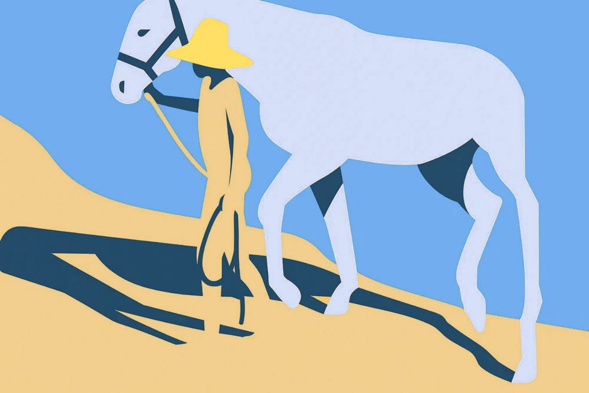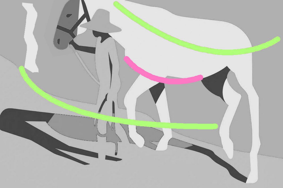 Values balance the horse’s brilliant whiteness against the darker boy and sea. This contrast builds depth and fixes the focal point on the animal. Lines of waves and reflections lead the gaze diagonally, structuring the scene’s rhythm. Composition alternates stable masses and liquid movement, harmonizing solidity and fluidity.