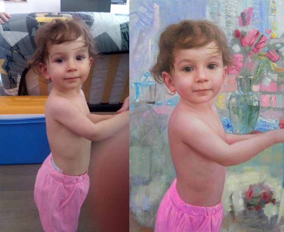 To turn a photo into an oil portrait, simply provide a good quality image and specify the desired format and style. The artist will then faithfully reproduce the features and details by hand on canvas.