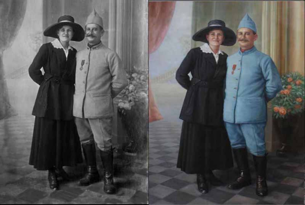 To transform an old photograph into a painted portrait in color, the artist restores faded details, recreates a palette faithful to the tones of the period, and paints in oil on canvas, bringing the image back to life with realism and emotion.